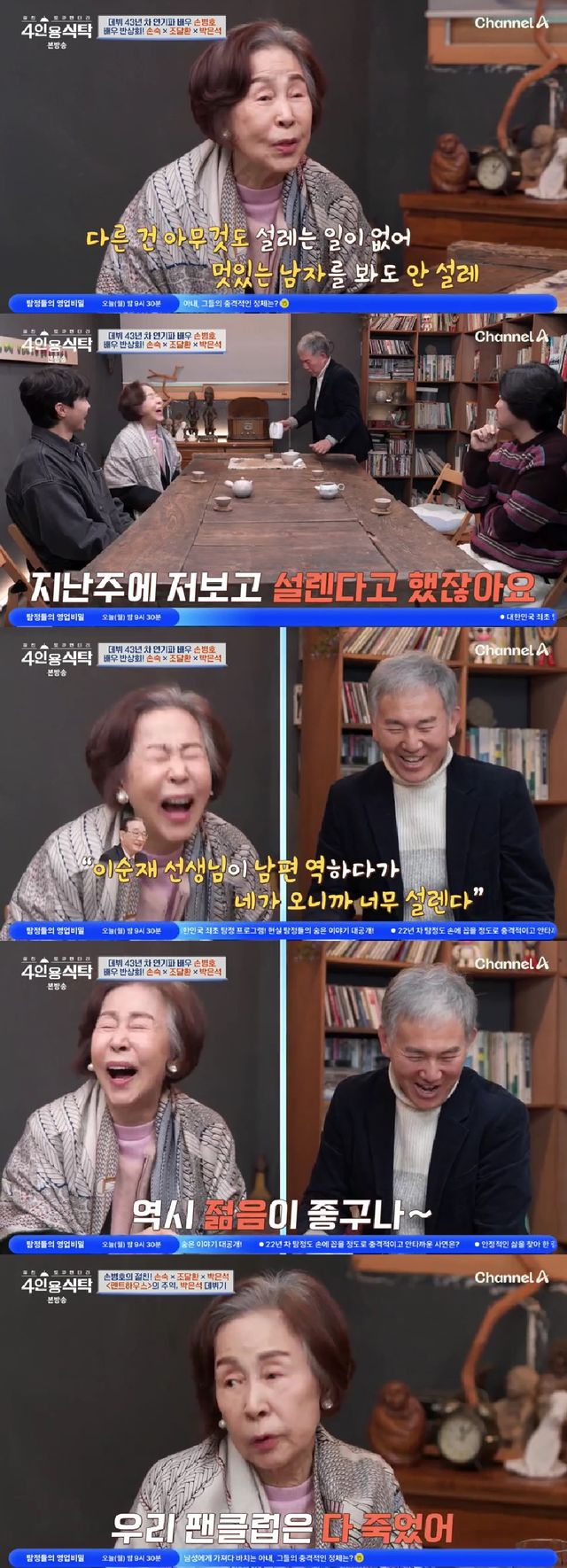 네 사람은 '배우'라는 직업을 통해 공통점을 나눴다. 손숙은 "나는 아직도 새작품에 들어가거나 연습실에 들어가면 설렌다. 참 이상하다. 다른 건 아무것도 설레는 일이 없다. 멋있는 남자를 봐도 안 설렌다"고 밝혔다.