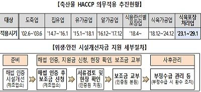 우선 지급 대상은 작년 매출액 5억 미만이거나 종업원 수가 10인 미만인 소규모 식육포장처리업체와 스마트 해썹[요관리점(CCP) 모니터링 데이터를 실시간으로 자동 기록·관리 및 확인·저장할 수 있도록 하여 데이터의 위·변조를 방지할 수 있는 시스템 적용]을 도입하는 축산물 업체이다.