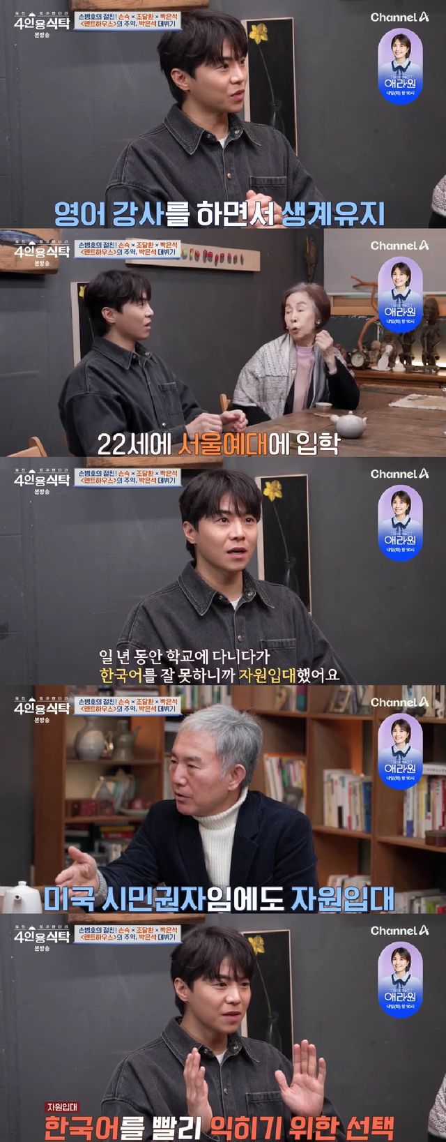 한국에서 어떻게 생계 유지를 했냐는 질문을 받자 박은석은 "영어 강사하면서 돈을 벌다가 22살에 서울예대에 갔다. 일 년 동안 학교에 다니다가 언어가 안 되니까 군대에 자원입대했다"며 미국 시민권자임에도 한국어를 빨리 익히기 위해 군대를 선택했다고 전했다.