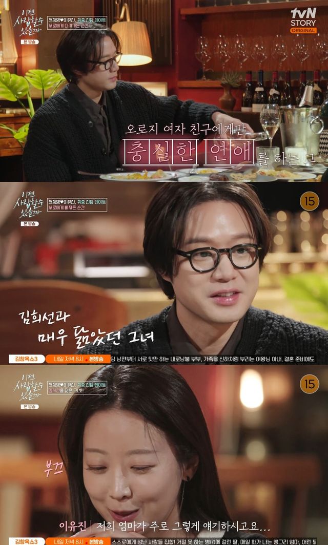 3일 방송한 tvN STORY '이젠 사랑할 수 있을까'에서는 천정명의 첫 소개팅이 공개됐다.
