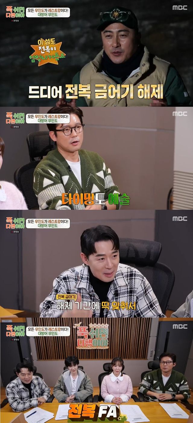 3일 방송한 MBC '푹 쉬면 다행이야'(이하 '푹다행')에서는 무인도 대방어 레스토랑을 연 안정환, 정호영, 오세득의 이야기가 담겼다.