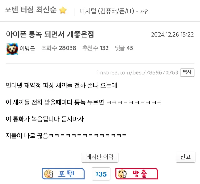 바이럴, 보이스피싱 놈들 지레 겁먹고 끊음 ㅋㅋㅋㅋ