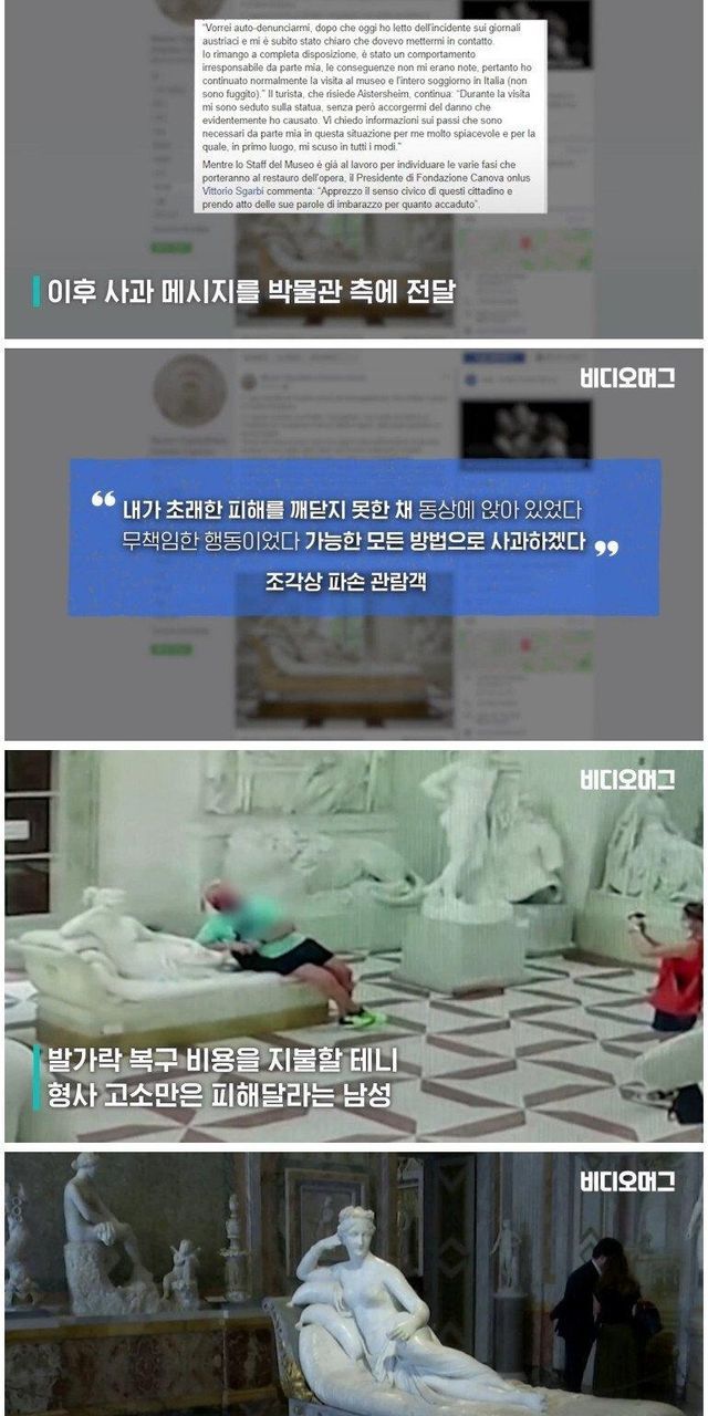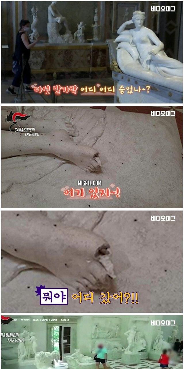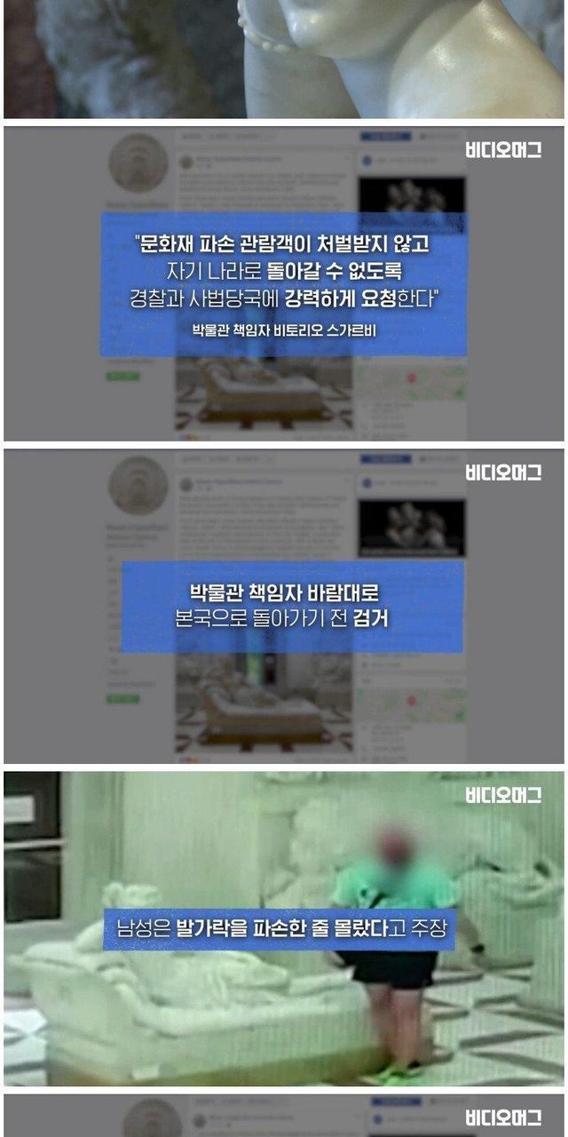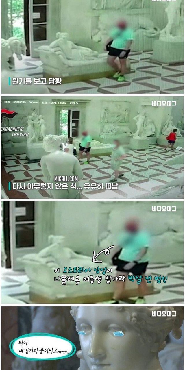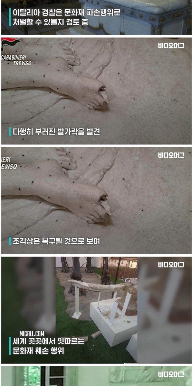 조각상 발가락 부러뜨린 관광객
