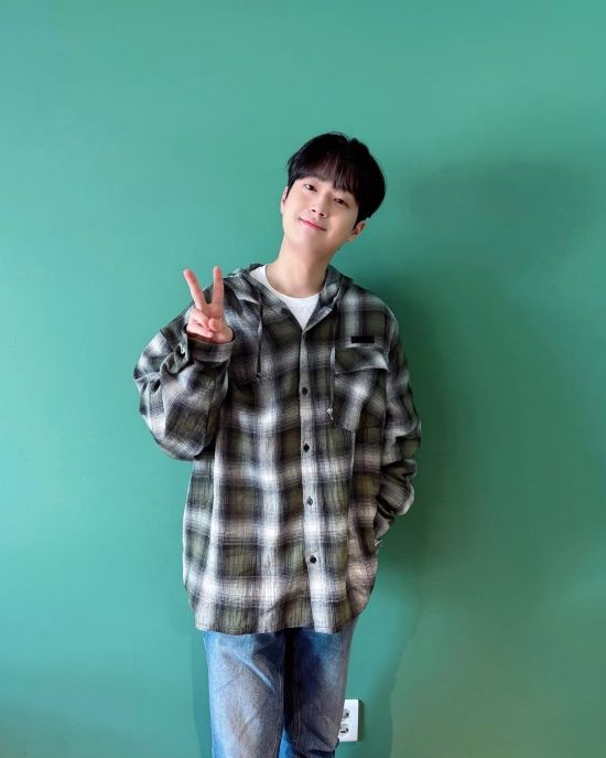 사진 속 그는 브이 포즈를 취하며 밝은 매력을 발산하고 있다.