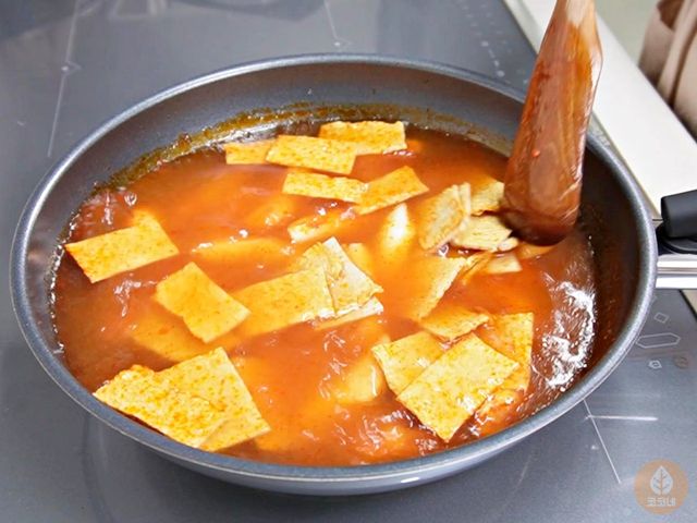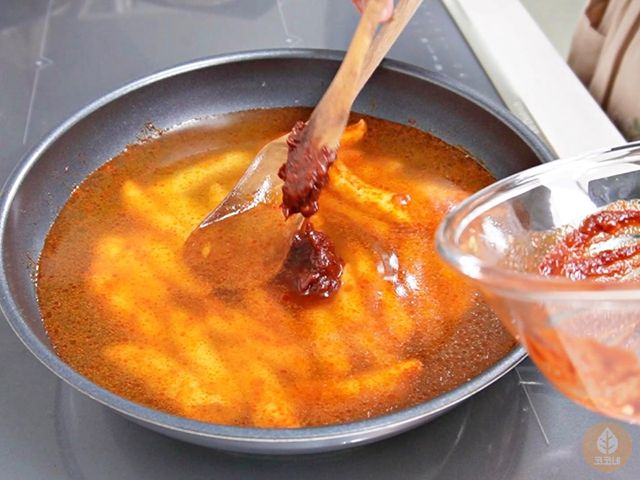 떡볶이 국물이 끓으면서 떡에 양념이 배면