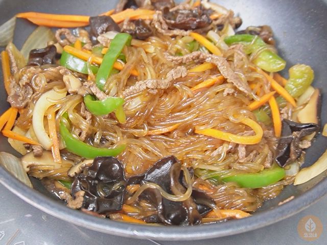 잡채 하나로 당면, 고기, 시금치, 당근, 양파, 버섯 등