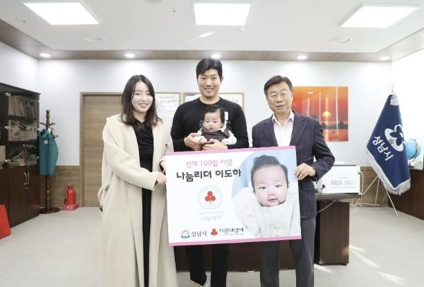성남시는 2월 3일 오후 4시 시장 집무실에서 신상진 성남시장과 이도하 군(수정구 창곡동·2024년 10월 12일생), 부모 등이 참석한 가운데 ‘생애 첫 기부금 100만원 기탁식’을 했다.