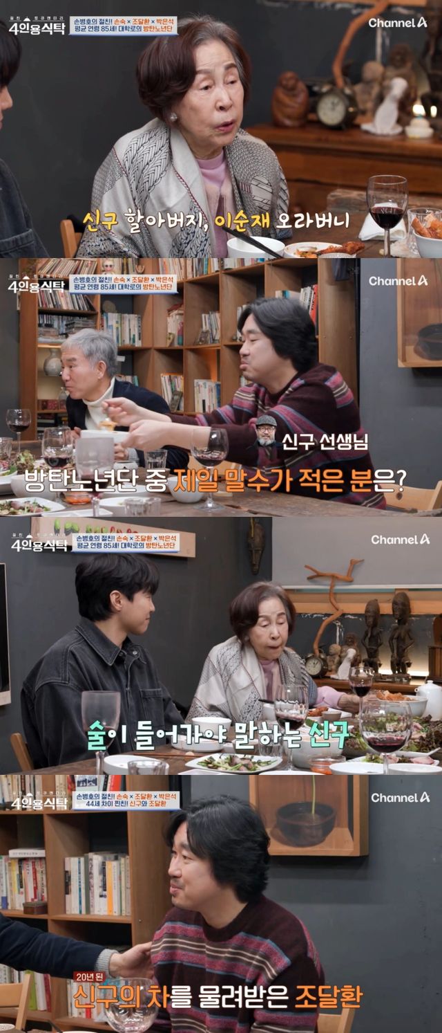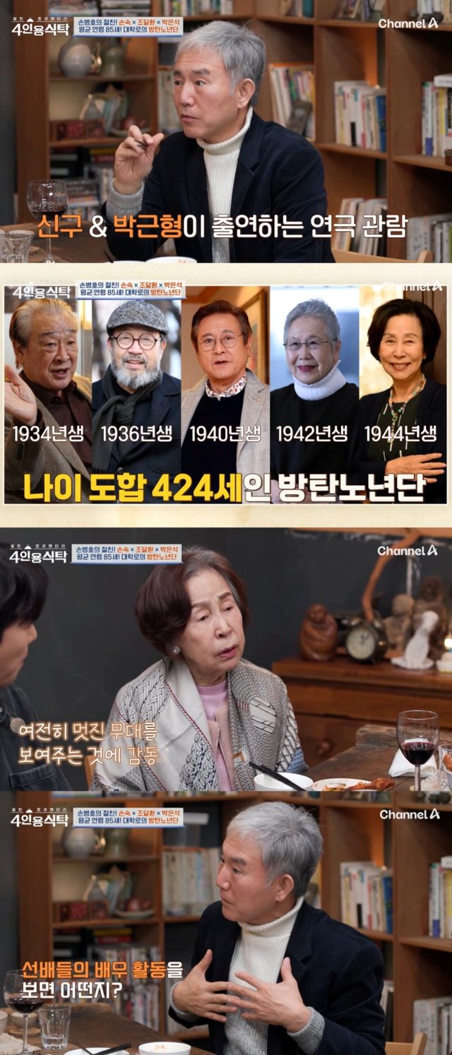 3일 방송된 채널A ‘절친 토큐멘터리 – 4인용식탁’(이하 '4인용식탁')에서는 배우 손병호가 손숙, 조달환, 박은석을 의외의 친분을 가진 이목을 화백 작업실로 초대했다.