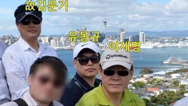 2015년 뉴질랜드 출장 당시 성남시장이었던 이재명 더불어민주당 대표와 고(故) 김문기 성남도시개발공사 개발1처장. / 김은혜 국민의힘 의원 제공