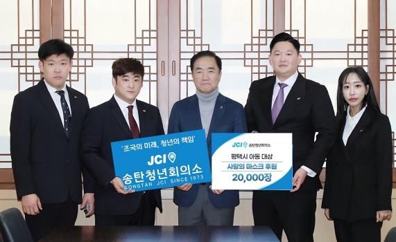 [와이뉴스] 평택시 송탄청년회의소가 지역사회 어린이들의 건강 보호를 위해 어린이용 마스크 60박스(총 2만 장)를 기부했다.