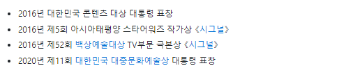 다섯 후보 중 유일 백상예술대상 대상 수상작 집필 2017년 ‘도깨비’