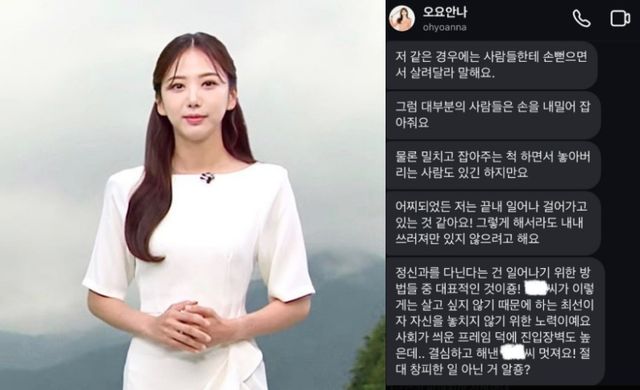 MBC 기상캐스터 고(故) 오요안나가 생전 팬에게 건넨 위로 메시지가 공개됐다.