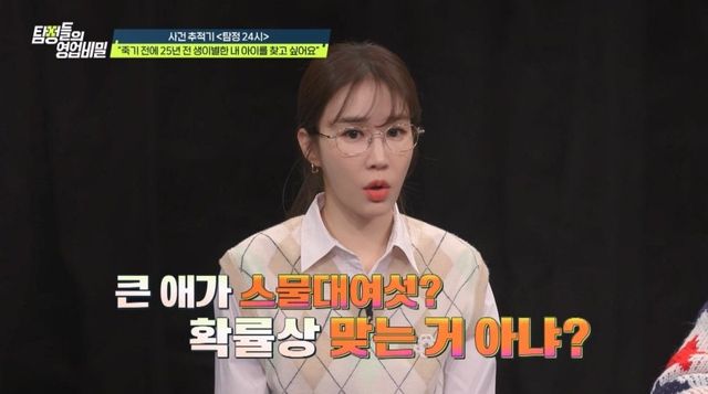 출산 후 정신을 차린 의뢰인은 아이를 찾았지만, 병원 관계자는 아이가 아들이었다는 사실만 알려줄 뿐 행방에 대해선 모두 “모른다”고 답변했다. 시댁에 가도 아이는 보이지 않았고, 울음소리조차 들리지 않았다. 25년이 지났지만 의뢰인은 단 한 순간도 아이를 잊지 못했다며 마음아파하고 있었다.