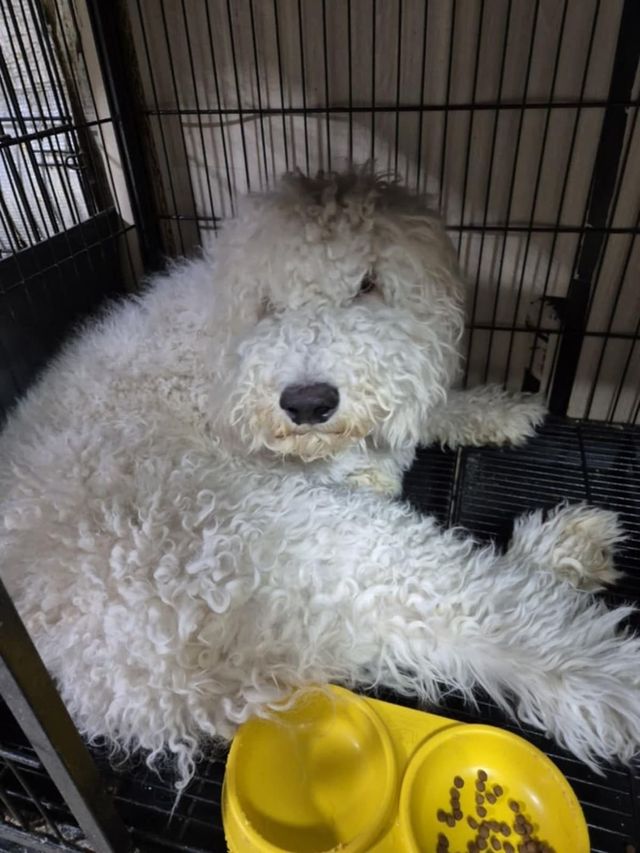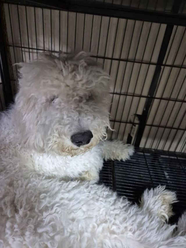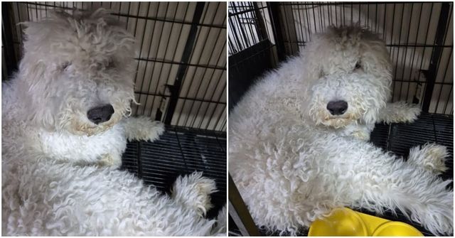 유기견은 대형견 견종인 스탠다드 푸들로, 보호소에서 제공되는 케이지에서 지내기에 불편한 커다란 몸집을 가지고 있다.