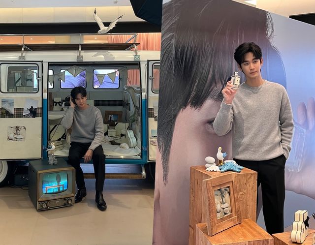 김수현이 한 향수 브랜드의 팝업 행사에 참석한 모습을 공개했다.