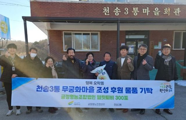 [와이뉴스] 지난 2월 4일, 여주시 천송3통 마을회관에서는 무궁화마을 조성을 위해 긍정영농조합법인이 약 200만 원 상당의 펠릿 퇴비 300포를 후원하는 기탁식이 열렸다.