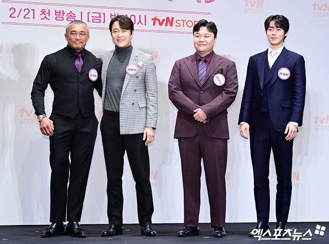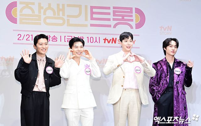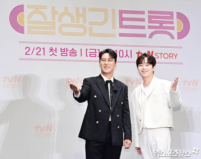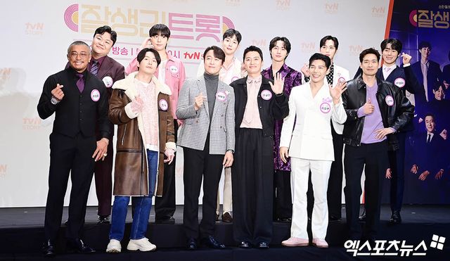 4일 오후 서울 구로구 신도림 라마다호텔 그랜드볼룸에서 tvN STORY 새 예능프로그램 '잘생긴 트롯' 제작발표회가 진행됐다. 이날 장민호, 이찬원, 추성훈, 장혁, 최대철, 인교진, 지승현, 정겨운, 태항호, 현우, 김동호, 이태리, 김준호, 한정완과 황다원 PD가 참석했다.