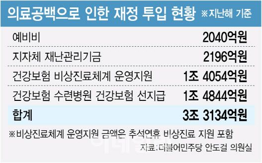 4일 국회 기획재정위원회 소속 안도걸 더불어민주당 의원이 보건복지부와 국민건강보험공단으로부터 제출받은 자료에 따르면 지난해 의료공백을 메우기 위해 소요된 국가 재정 규모가 적어도 3조 3000억원을 넘어서는 것으로 집계됐다.
