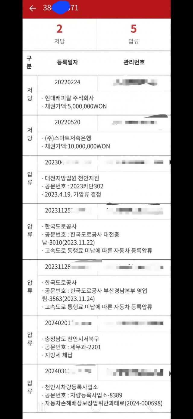차 저당 잡혀있고지방세 체납에 통행료 미납에..