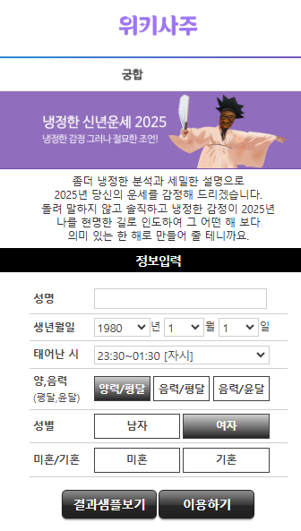 냉정한 신년운세 2025 화면 / 위키사주