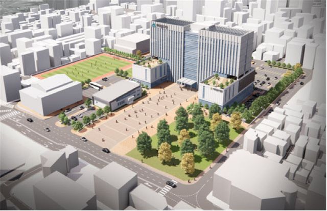 구는 3~4월 디씨알이와 사업비, 건축 규모 등을 협의한 뒤 사업협약을 하고 기본 및 실시설계를 거쳐 올해 말이나 내년 초 착공할 방침이다. 우선 구청 부지 안에 있는 제3청사와 청소년수련관을 허물고 운동장 부지 등 3만여㎡에 활용해 구청과 구의회 신청사를 건립할 계획이다. 2028년 건물을 준공하면 현재 사용 중인 구청 옛 청사와 의회 옛 청사를 철거하고 해당 부지(1만여㎡)에 이르면 2029년까지 운동장, 공원 등의 부대시설을 조성한다.