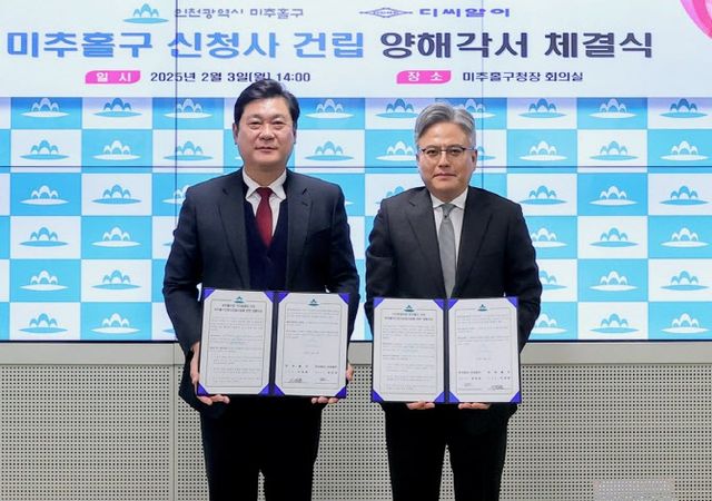 앞서 미추홀구는 사업비 문제 때문에 2022년 민·관 합동개발 방식으로 신청사 건립 사업을 추진했으나 당시 도시개발법 개정 등으로 사업이 무산됐다. 이에 구는 청사기금 등 885억원 규모의 사업비로 자체적으로 건립하는 방안을 추진했고 지난해 10월 행정안전부 중앙투자심사를 통과했다. 구는 관련 사업을 진행하던 중 디씨알이의 공공 기여 의사를 확인하고 이번에 협약을 체결했다. 협약으로 미추홀구는 사업비 885억원을 아끼고 구민을 위한 다른 사업에 집행할 수 있게 됐다.