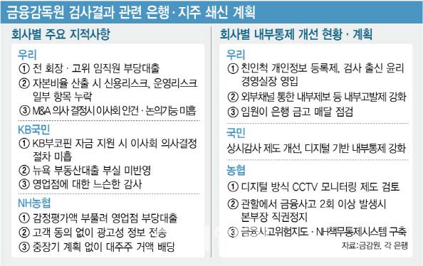 KB국민은행 또한 ‘고객 신뢰회복’을 위해 여신심사와 상시감사 등 내부통제 업무 프로세스를 보완하고 디지털 기반의 내부통제 시스템을 고도화하겠다며 온정적 조직문화 개선 등을 통해 고객 신뢰회복에 노력하겠다고 강조했다.