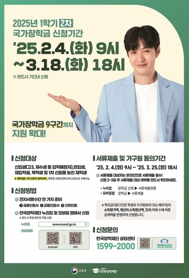 한국장학재단이 2025학년도 1학기 국가장학금 2차 신청을 4일 시작했다. 오는 3월 18일까지 신청할 수 있고, 마감 이후에는 신청이 불가능하다.