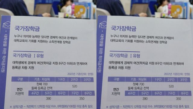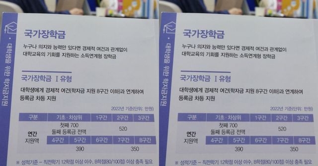 2023년 11월 20일 서울 중구 한국장학재단 서울센터에 국가장학금 관련 안내문이 놓여 있다. / 뉴스1