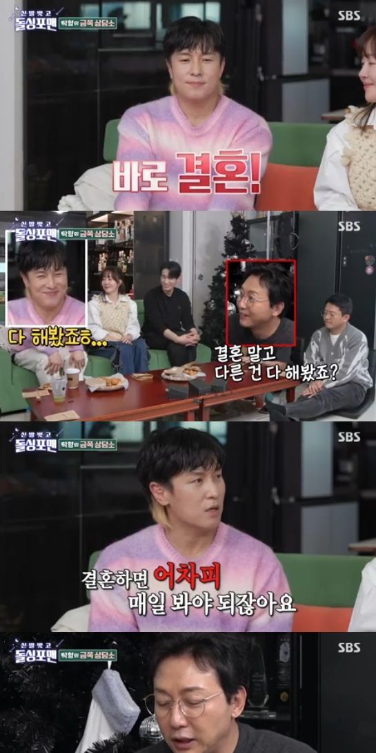 4일 방송된 SBS 예능 프로그램 '신발 벗고 돌싱포맨'에서는 엄지원, 윤박, 김동완이 출연해 이야기를 나눴다.
