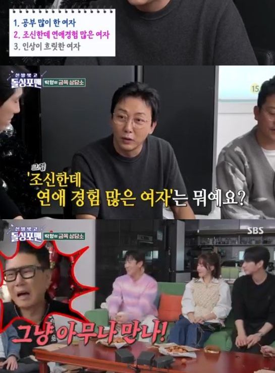 그러면서 탁재훈은 "조신한테 연애 경험이 많은 여자는 뭐냐"고 했고, 김동완은 "조신한 성격을 좋아한다. 연애 경험이 많다고 조신하지 않은게 아니고, 연애 경험이 없다고 조신한건 아니지 않냐"고 말했다.
