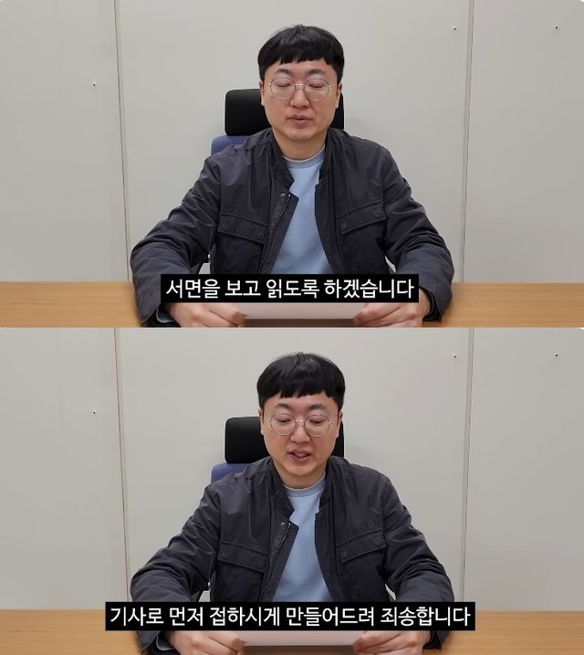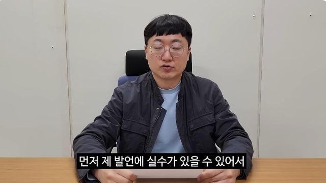 공개된 영상에서 '충주맨' 김선태는 "먼저 제 발언에 실수가 있을 수 있어 서면을 보고 읽겠다"며 양해를 구했다.