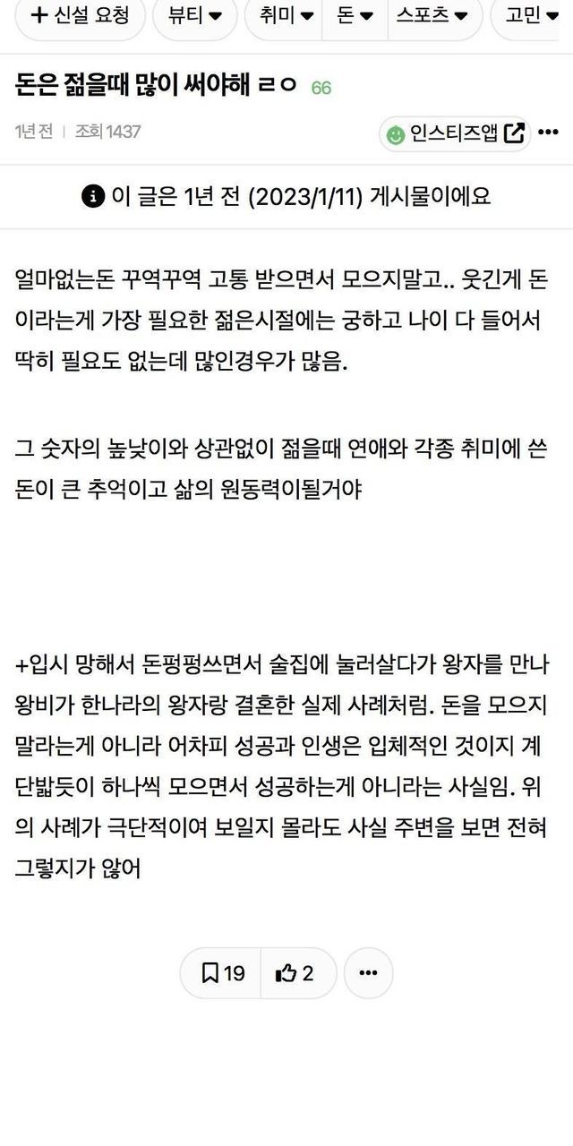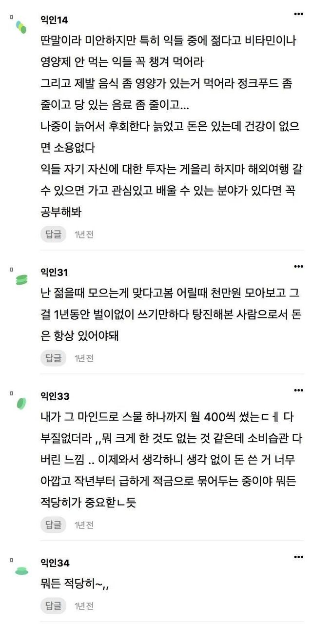 돈은 젊을 때 많이 써야해 ㄹㅇ