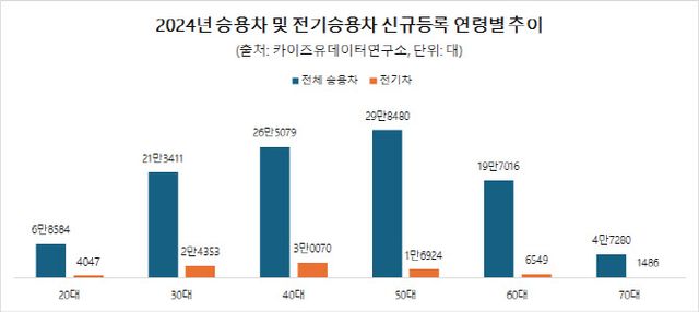 4일 카이즈유데이터연구소에 따르면 지난해 30대 소비자의 전기차 신규 등록 대수는 2만 4353대로 40대(3만 70대)에 이어 두 번째로 많았다.
