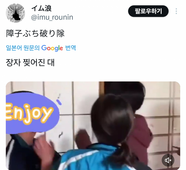 료칸 물품들 파손시킨 만행을 벌인 것