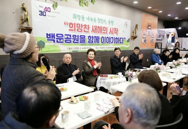 ‘희망찬 새해의 시작 백운공원을 함께 이야기하다’를 주제로 열린 이번 현장 간담회는 백운동 주민의 힐링 공간이자 일출·일몰 명소인 백운공원에서 진행됐다. 현장에서 답을 찾겠다는 이 시장의 제안에 주민들이 직접 고른 현장이었다.