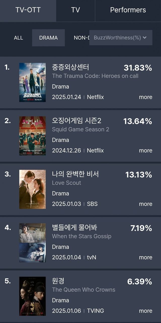 국내 TV-OTT 드라마 화제성 1위 / 출연자 화제성 주지훈 1위 추영우 4위