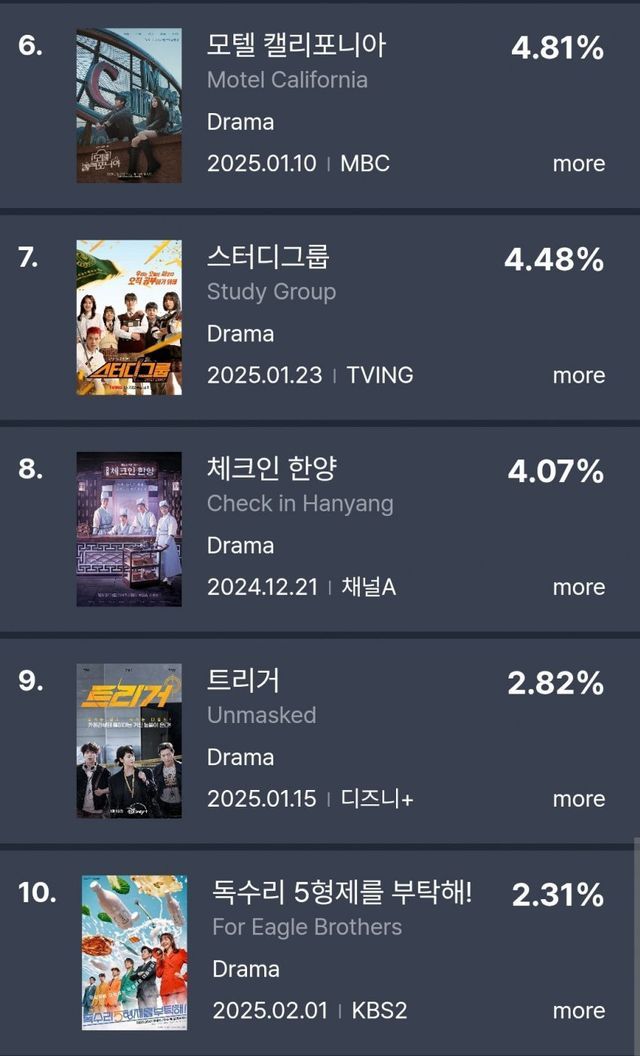 역대 오리지널 한국 드라마 순위 11위 (진행중)