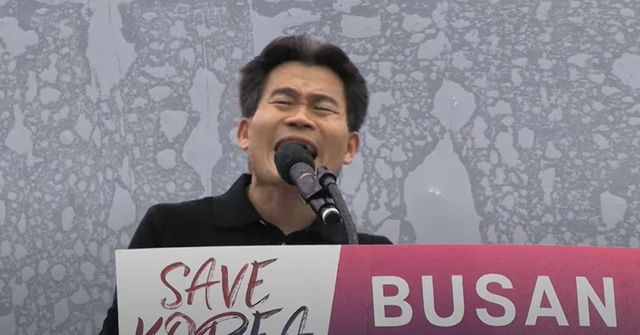 부산역 집회에서 연설하는 전한길 씨. / 유튜브 채널 ‘꽃보다전한길’