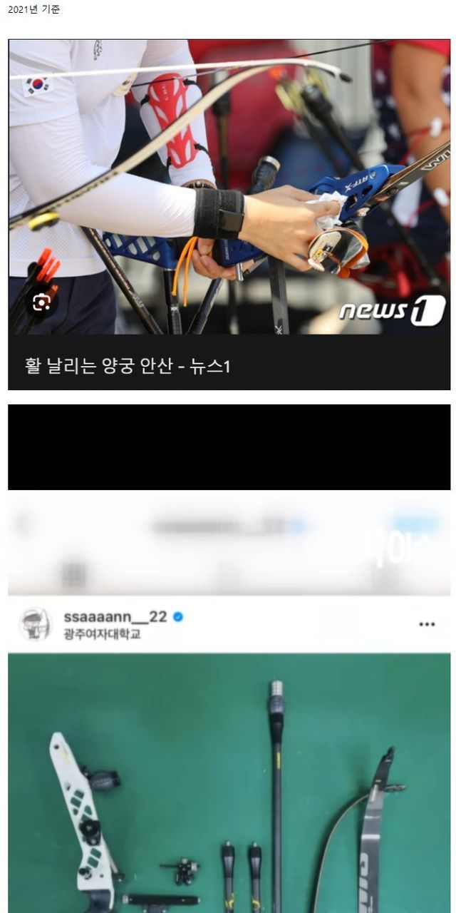 안산이 사용하는 양궁 장비