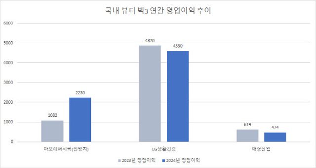‘뷰티 빅3’ 중 막내 격인 애경산업(018250)의 경우엔 다소 아쉬운 성적표를 남겼다. 애경산업의 지난해 영업이익은 474억원으로 전년대비 7% 줄었고 매출액은 6791억원으로 2% 남짓 늘었다.