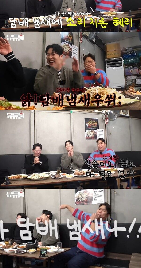 문세윤은 혜리가 방송 중에도 담배 냄새를 잡아냈다고 전했다.