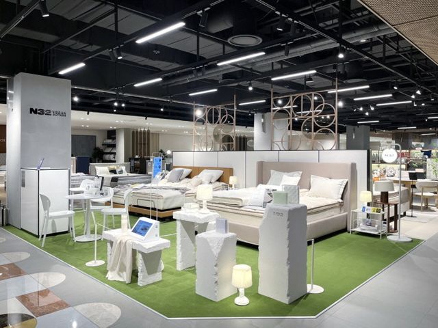 경기도 용인시 수지구에 위치한 신세계백화점 사우스시티점 6층에 문을 연 'N32 신세계백화점 사우스시티점'은 기존 침대 매장에서 탈피해 보기만 해도 힐링이 되는 푸르른 자연을 형상화한 각종 조형물과 카펫, 오브제 등으로 친환경 연출을 선보인다.