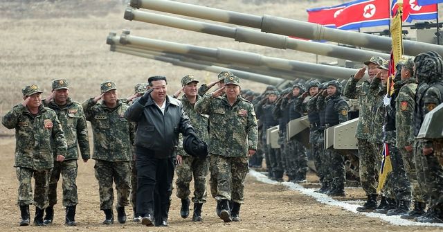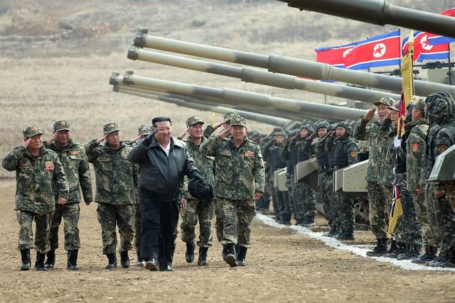 김정은 북한 노동당 총비서가 2024년 3월 탱크병대연합부대간의 대항훈련 경기를 지도한 모습 / 평양 노동신문=뉴스1