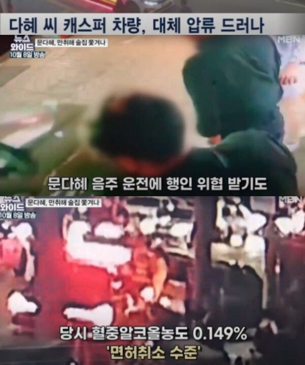 현장에서 경찰에 적발된 문 씨는 즉각 면허가 취소됐으며, 이후 조사 과정에서 음주운전 사실을 인정한 것으로 전해졌다.
