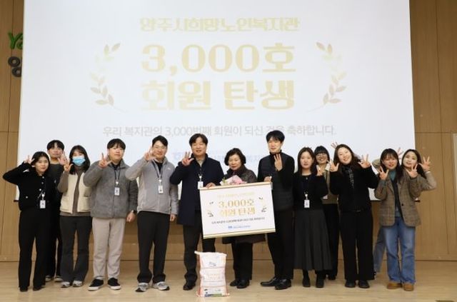 이날 3,000번째 주인공인 임정자 회원은 “양주시희망노인복지관을 통해 노년기에 다양한 서비스를 누릴 수 있게 되어 정말 기쁘다.”며 소감을 전했다.