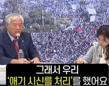 이어 전 목사가 “내가 (당시 인터뷰에서) 내 아들을 죽였다고 했냐. 아니면 아침 먹다가 갑자기 죽었다고 했냐”고 묻자 기자는 “시체를 묻었다고 하지 않았냐. 영아 유기”라고 답했다. 이에 전 목사는 대답하지 않고 자리를 떠났다.