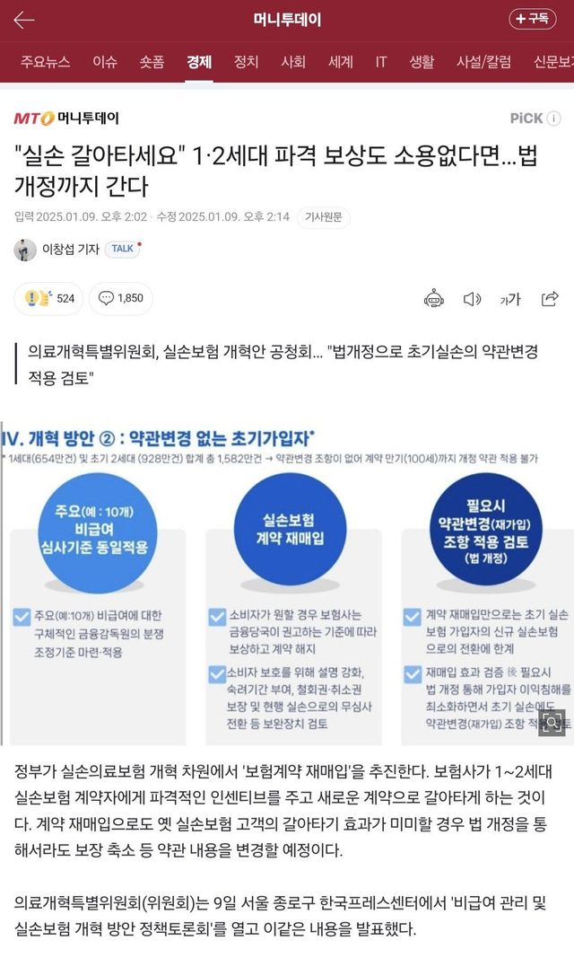 실손 보험 5세대로 강제 약관변형 검토 중
