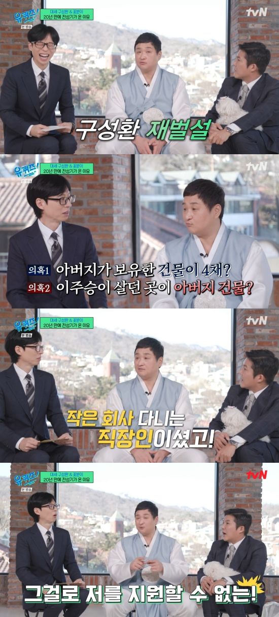 특히 구성환은 "그래서 좀 오해도 많이 받았던 게 제가 재벌 아들이라는 이야기가 있어가지고"라며 재벌설을 언급했고, 유재석은 "너무 여유로우니까"라며 공감했다.