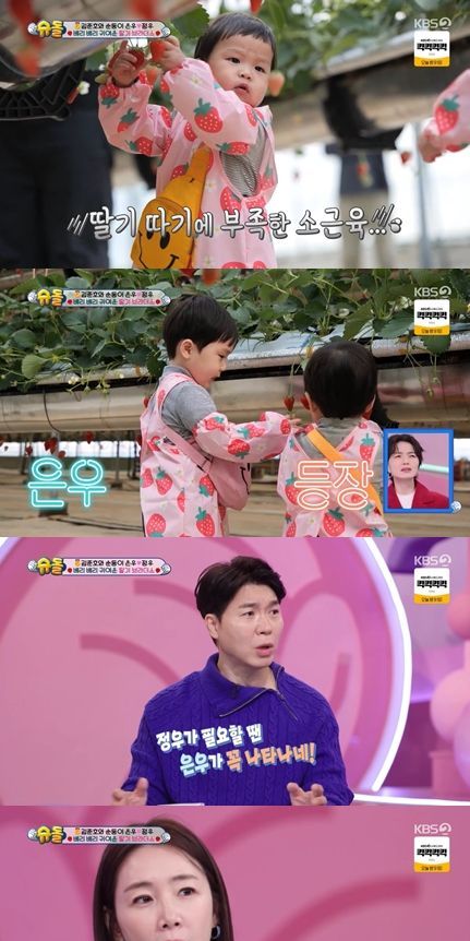 이어 공개된 VCR 영상에서는 아빠 김준호와 '우형제' 은우, 정우가 딸기농장에서 야무지게 딸기 따는 모습이 그려졌다.